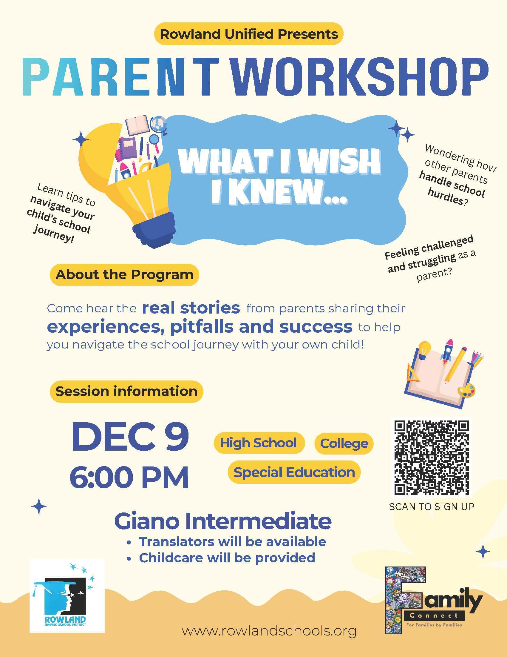 Family Connect Workshop: What I Wish I Knew - Come Learn From Parents About Topics: High School/College/Special Ed